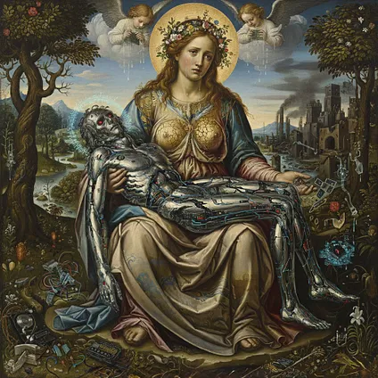 Other observers have noted the religious structure underlying this position. Thiel has compared the quest for artificial general intelligence to “a substitute for God.” Transhumanism, he has said, is “a secularized version of Christian eschatology.” Eternal life, minus the Cross. Judgment Day, without repentance. Ascension, via silicon.